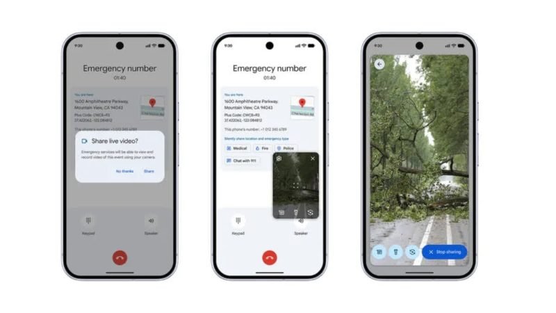 एंड्रॉइड इमरजेंसी लाइव वीडियो आपको एक ही टैप में इमरजेंसी सेवाओं के साथ ज़रूरी विज़ुअल जानकारी शेयर करने में मदद करता है. (फोटो क्रेडिट: Google)