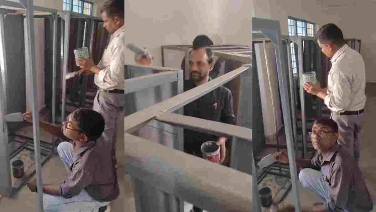 सक्ति। छत्तीसगढ़ के सक्ती जिले के चंद्रपुर स्थित शासकीय शशिभूषण सिंह उच्चतर माध्यमिक विद्यालय में शिक्षा व्यवस्था को लेकर गंभीर सवाल खड़े हो गए हैं। यहां शिक्षक बच्चों को पढ़ाने के बजाय स्कूल की टेबल पेंट करते नजर आए। इतना ही नहीं, इस दौरान स्कूल के प्राचार्य नागेंद्र पटेल शिक्षकों का काम करते हुए वीडियो बनाते दिखाई दिए।