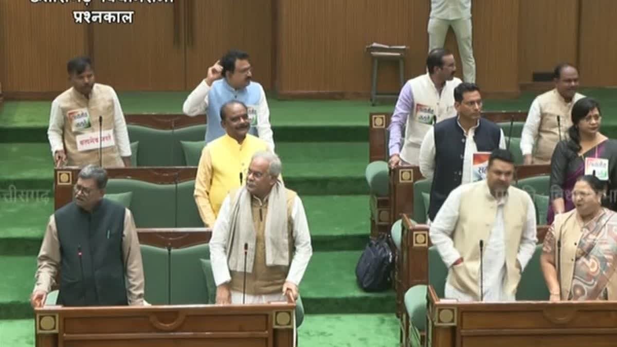 छत्तीसगढ़ विधानसभा में विपक्षी विधायकों ने लहराए सत्यमेव जयते के पोस्टर, धरमजीत सिंह ने विधायकों को कहा मजदूर